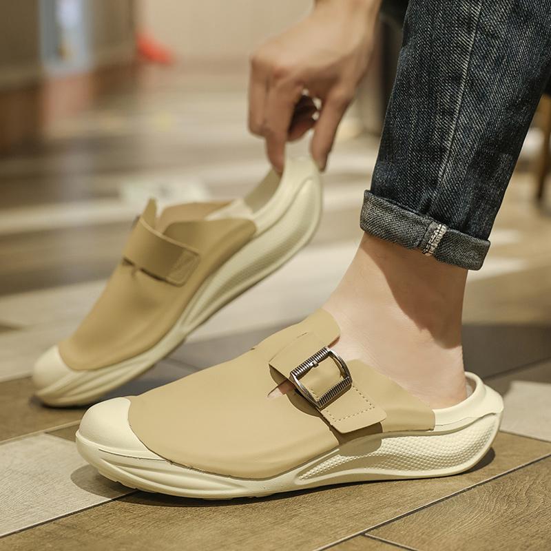 Leather Backless Loafers Slippers Half Shoes for Men Mules Men Casual Shoes Outdoor Man Slides Men's Flats Non-slip Lazy Shoes