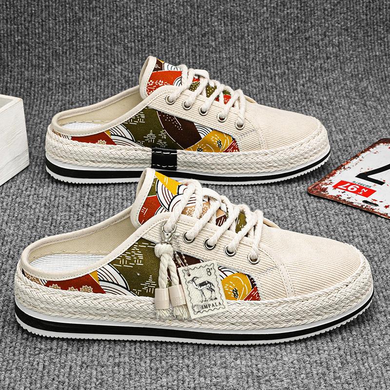 Half Shoes For Men Mules Backless Loafers Slipper Open-Back Board Shoes Summer Flat Shoe Slides Sandals Semi-Drag Casual Shoes