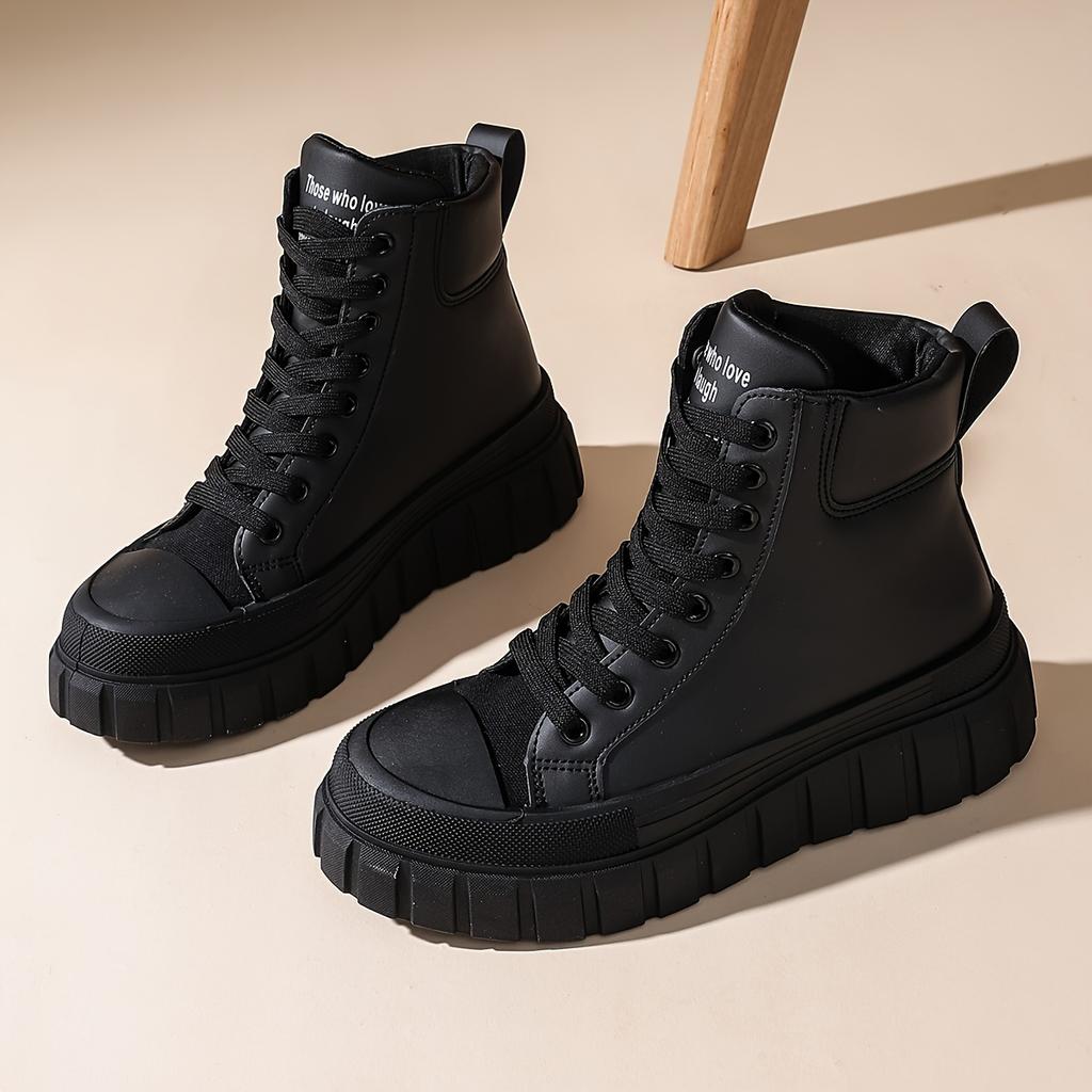 Four Seasons Outdoor Women's Comfortable Thick Sole Heightening Casual Shoes Daily Laced Black Simple High Top Sports Women's Shoes