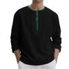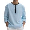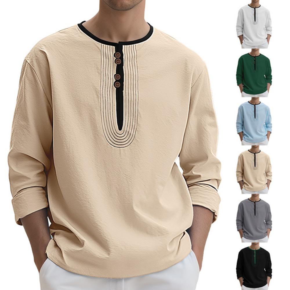 Pánské módní tričko s límečkem henley 95% len s dlouhým rukávem podzimní volné ležérní prošívané tričko pánské oblečení