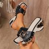 Women's Square Head Open Toe Rivet Metal Buckle Waterproof Platform Non-slip Square Heels Super High Heel Sandals