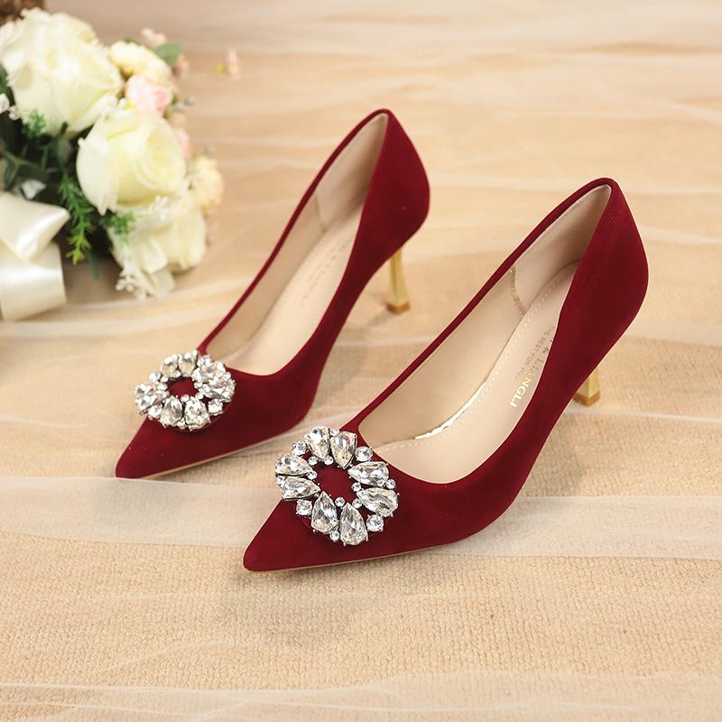Spring New Thin Heel Shoes Women's Fashion Pointy Shallow Mouth Suede Glitter Anti-slip Wear-resistant High Heels