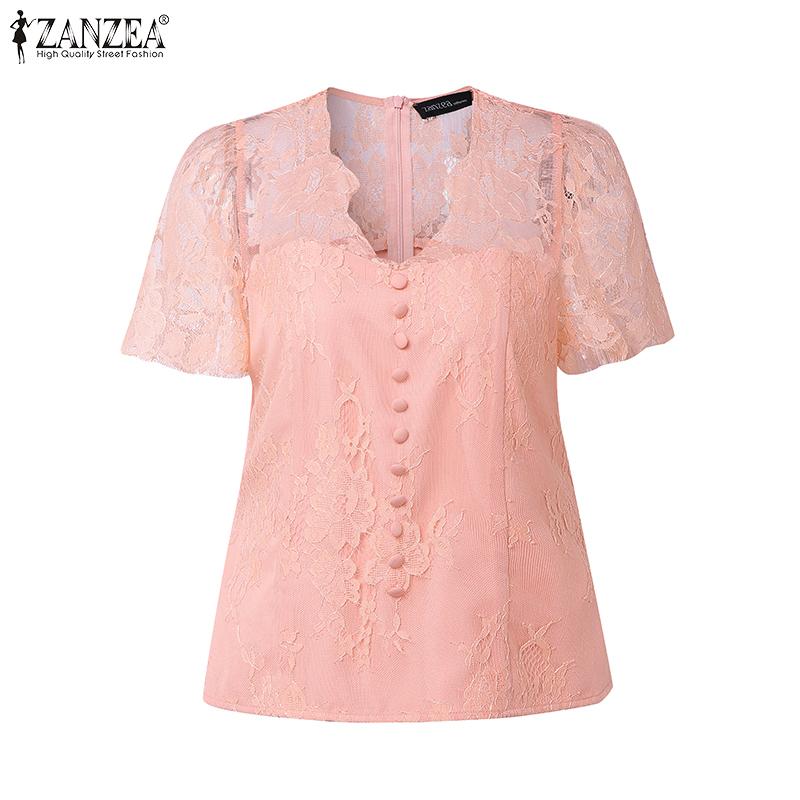 ZANZEA Women Lace Patchwork Summer Casual V-Neck Short Sleeve Blouse