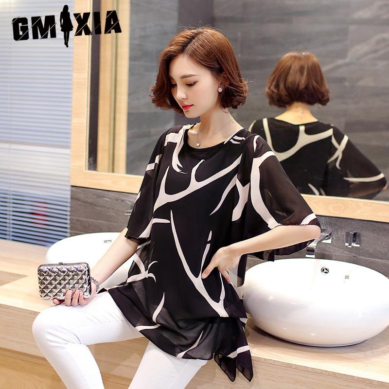 GMXIA Letní dámské oblečení nadměrných velikostí: Volná tištěná halenka s krátkým rukávem z šifonu, top s rozšířenými rukávy pro ženy