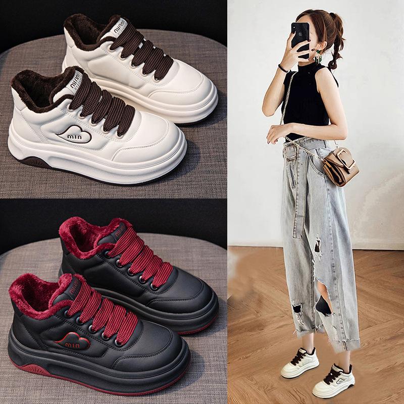 Fleece little white shoes women's high-top shoes autumn and winter new thickened warm bread shoes versatile platform sports board shoes