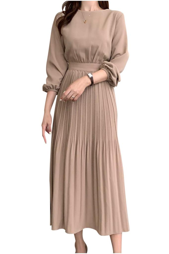 Necote Pleated Classic Long Party Solid Long For Office Size NC405BEM Women's Dress, Sleeves, Dress, Color, Length, Adults, Wear, Spring, Autumn,