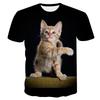 3D Digital Cat Art Printed Round Neck Short Sleeved Casual T-shirt for Teenagers with Stripes Shirt