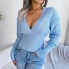 Women's Fall/winter Sexy Cross V Neck Solid Color Long Sleeve Midriff Sweater