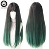 7jhh Paruky Dlouhé Rovné Paruky s Ofinou pro Ženy Omber Modrá Syntetické Háčkované Vlasy Afroamerická Oblíbená Dámská Plná Paruka