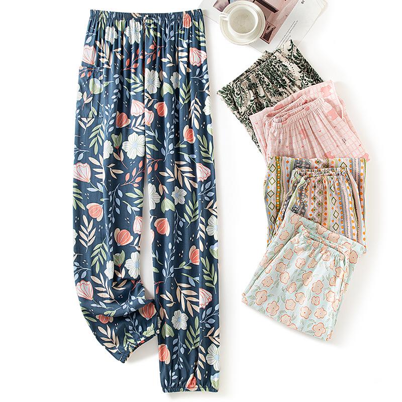 Dámské letní bavlněno-hedvábné pyžamové kalhoty: Lehký, Odolný proti komárům, Volný střih, Elastický kotník, Na pláž nebo na doma.