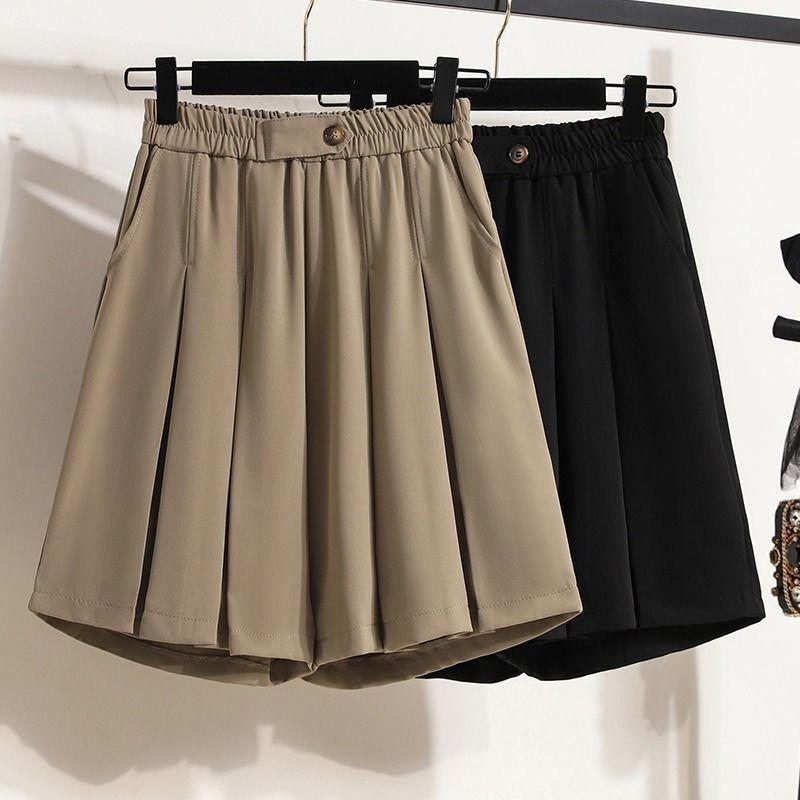 Summer New Korean Elastic High Waist Slim Wide Leg Shorts Women Solid Button Pockets Fashion Simple Loose Casual Shirring Shorts