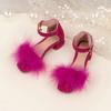 Luxusní růžovo-fialové péřové sandály pro děti dívky nízký podpatek pásek kolem kotníku taneční sandály dítě čtvercová špička křišťálová přezka společenské boty