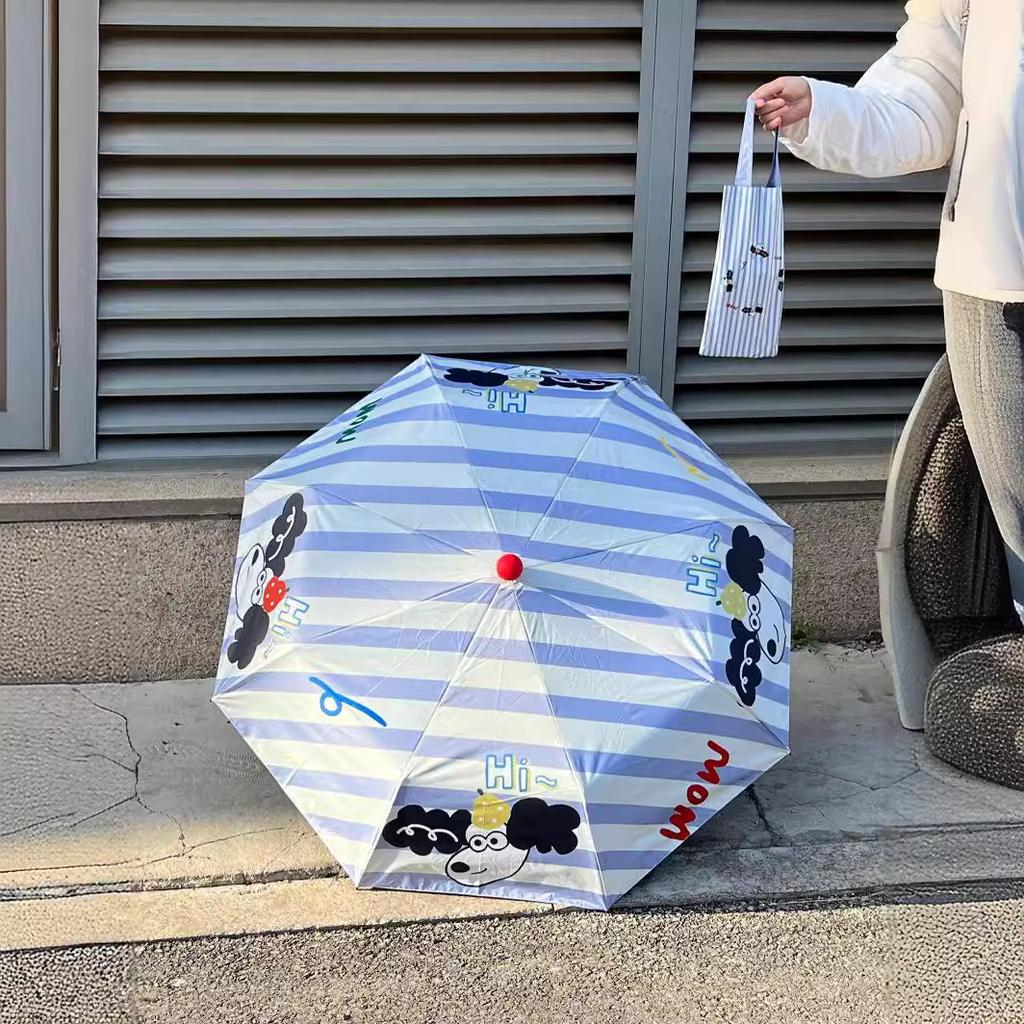 New hand-opened 8-bone vinyl curved hook umbrella, weather and rain cartoon design sunshade, folding sunscreen sun umbrella