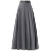 JINJUDUO Long Sleeve Pleated Fashionable Plain Button Closure Long Dress with Waistband and Belt Women's Autumn/Winter Dress, (Gray, XX-Large)