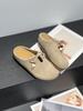 Leather thick-soled bag head, half slippers, women's outer wear, half support, autumn style, lace-up, non-slip for pregnant women, ugly and cute.