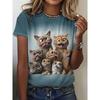 Summer Female Commuting Cat Dog Print Round Neck Short Sleeved Shirt