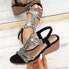 Zářivé pohodlí | Dámské klínkové sandály s kamínky v bohémském stylu, platformový podpatek s otevřenou špičkou a elastickým páskem, plážové sandály