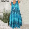 BITCED Dámské letní šaty bez rukávů s květinovým potiskem a kulatým výstřihem