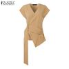 ZANZEA Women Casual V Neck Short Sleeve Side Button Irregular Loose Blouse
