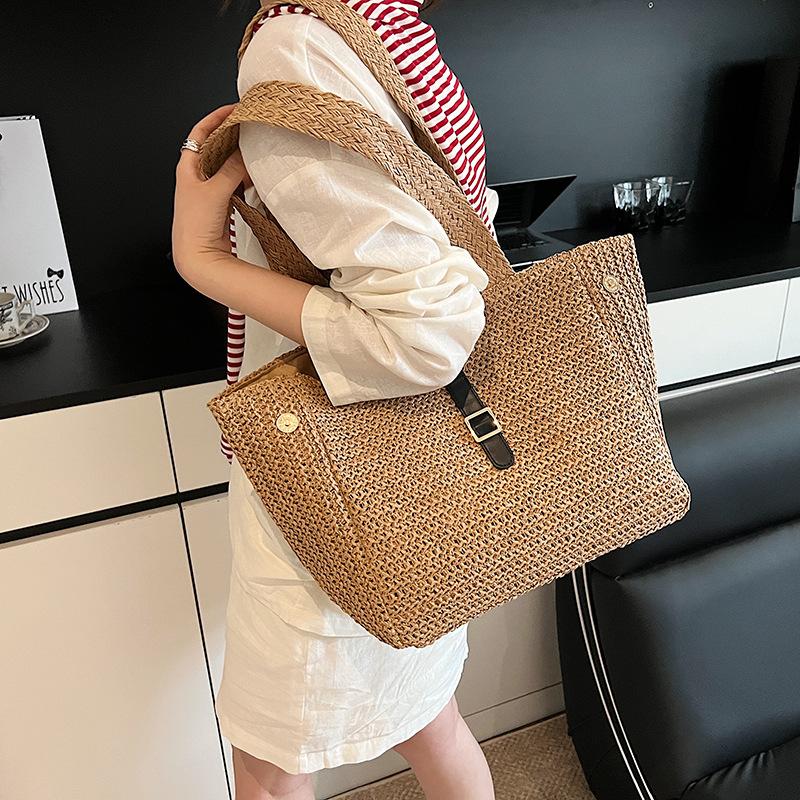Summer large-capacity women's new commuter shoulder bag seaside beach woven tote straw bag