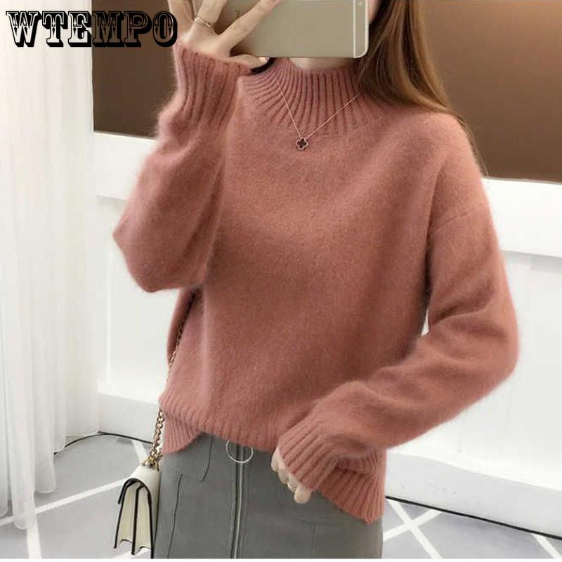 Podzimní a zimní dámský svetr s polopřiléhavým rolákem, pletený pulovr, svetr, košile