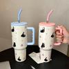 Cute Cat High Cup Girls Cup with Lid Casual Cup Ceramic Mug with Straw Birthday Gift Style