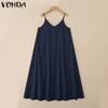 VONDA Women Casual Strap Sleeveless Ruffled Baggy Casual Swing Long Dress