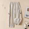Objevte ztělesnění pohodlí a stylu s těmito dámskými zkrácenými harémovými kalhotami, které jsou dokonalým doplňkem vašeho letního šatníku.. Tyto kalhoty jsou vyrobeny ze směsi měkkého, prodyšného lnu a jsou zdobeny elegantní výšivkou a krajkovou lemovkou pro nádech ženskosti.. Díky volnému střihu poskytují bezkonkurenční pohodlí pro každodenní nošení.. I když tyto kalhoty nemají délku rukávu, pyšní se sofistikovaným designem límce s klopami, který dodává jejich ležérnímu, ale šik vzhledu.. Ideální pro ty, kdo oceňují uvolněnou estetiku Mori Girl.