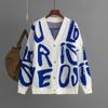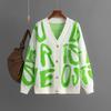 Dámský podzimní a zimní svetr Cardigan s potiskem písmen, zapínáním na knoflíky, s dlouhým rukávem, pletený svetr
