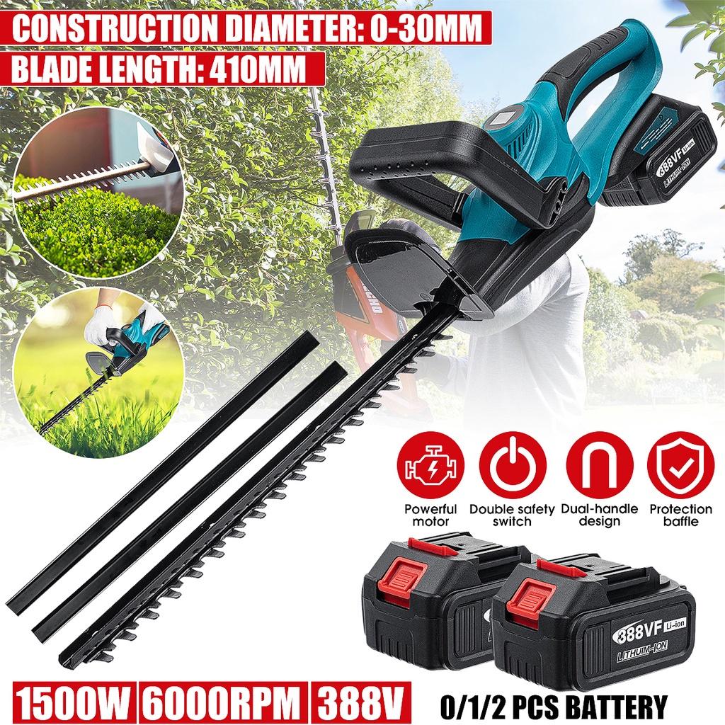 1500W 388VF Cordless Hedge Trimmer Electric Hedge Trimmer Cordless Battery Pruner Trimmer for Grass Garden Tool for Mak