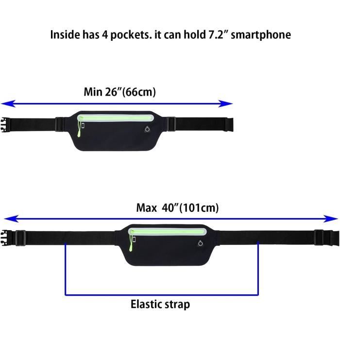 Ceinture de Course Fine - Sac Banane Ultra léger - pour Femme et Homme, Noir, Moderne