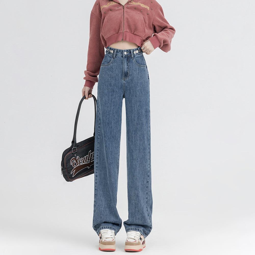 Korean version of versatile adjustable wide-leg jeans women's 2025 autumn and winter new high-waisted straight mopping jeans