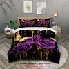3dílná sada povlečení s potiskem fialových růží, 1 povlak na přikrývku + 2 povlaky na polštář, manželská postel, vhodné pro ložnici žen a dospělých