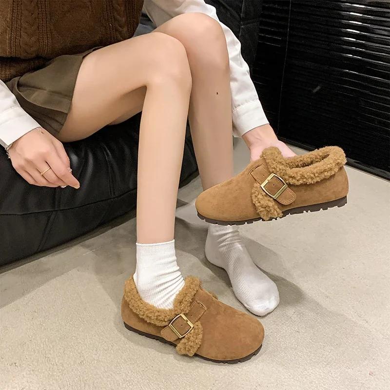 Women's Shoes 2024 Brand Buckle Strap Women's Flats Fashion Round Toe Casual Flat Shoes Hot Sale Plus Velvet Solid Flat Shoes
