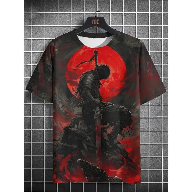 3D tričko s potiskem Válečník Samuraj Pánské módní tričko s kulatým výstřihem a krátkým rukávem s grafikou