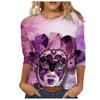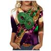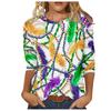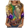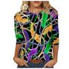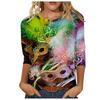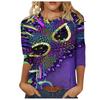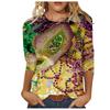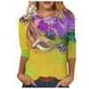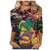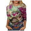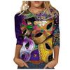 Long Sleeved Glamorous Mask Patterned Top Carnival Themed Printed Women's T-shirts