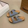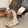 Leather platform shoes women's summer wear new half slippers with Boken cool slippers