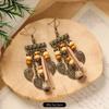Retro niche literary earrings, natural plant fruits, wooden dried fruits, long fringed women's earrings