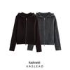 Kaslead New Arrival Black Loose Zip Sweatshirt