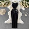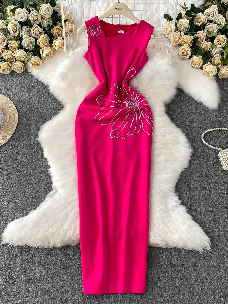 Dinner Party Dress Women's Summer High Sense Hot Diamond Flower V-Neck Sleeveless Slim Skinny Split Dress