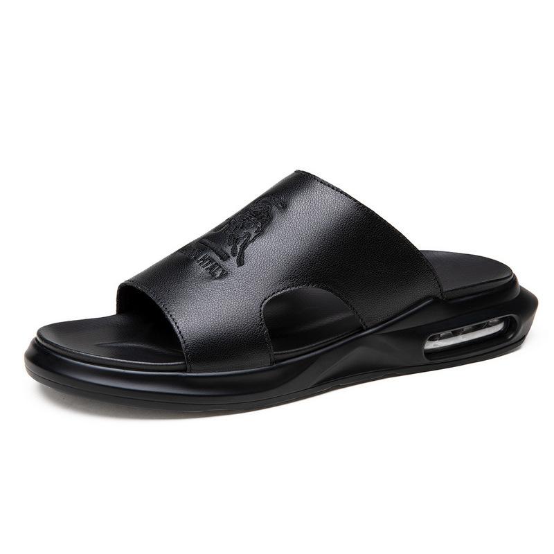 Men Genuine Leather Slipper Embroider Casual Sandals Comfortable Slides Cushion Beach Shoes
