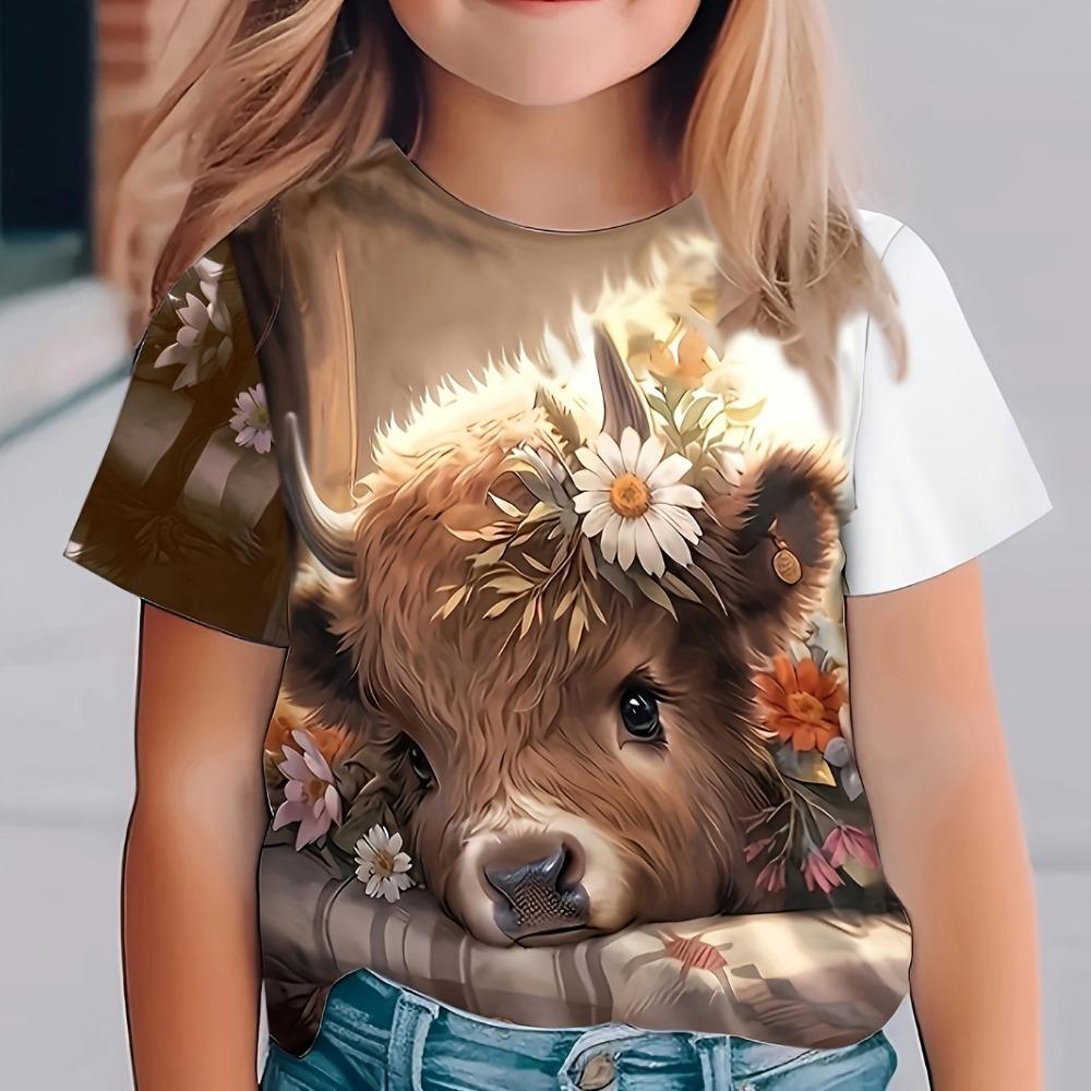 Children's Clothing Girl Short Sleeve Child Cute Animals Print Casual Round Neck Tops Summer