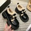 Autumn and Winter British Style Small Leather Shoes for Female New Student's Japanese Vintage Plush Warm Cotton Shoes for Women