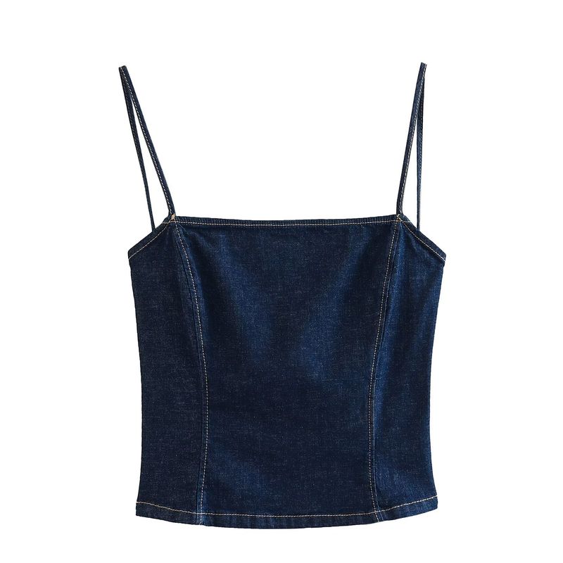 Kaslead Sexy Short Denim Open Back Tops