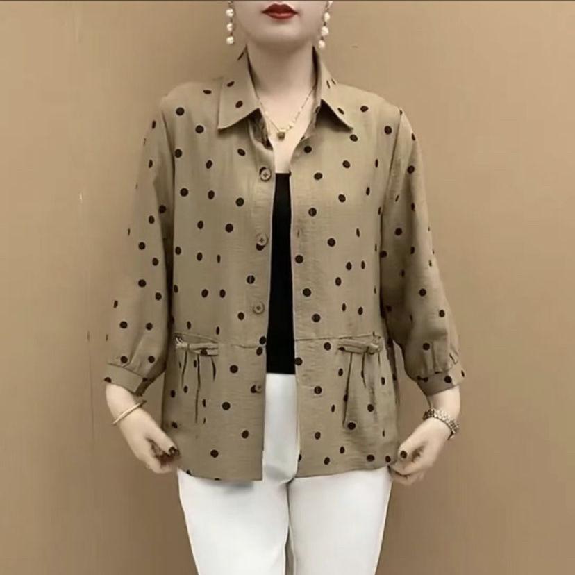 Women's Plus Size Polka Dot Sun Protection Cardigan Jacket Spring Mom's Outfit 3/4 Sleeve Thin Loose Shirt