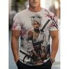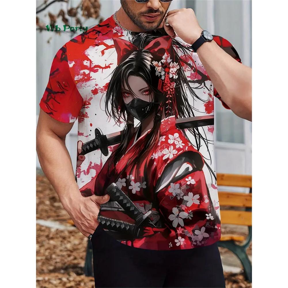 Sakura Samurai Pattern Men's T-Shirt Japanese Anime Short Sleeve T-Shirt Harajuku Tops Summer Men's Oversized Casual Clothing