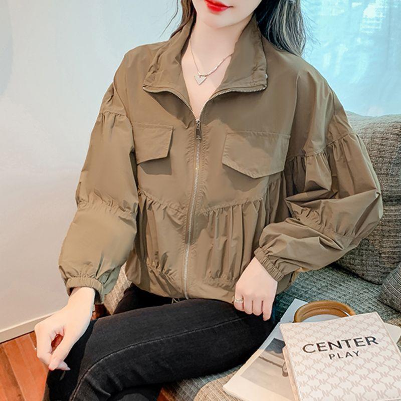 Women's Polo-Collar Spring and Autumn Outerwear Loose Slimming Retro Jacket with Versatile Style for Instagram