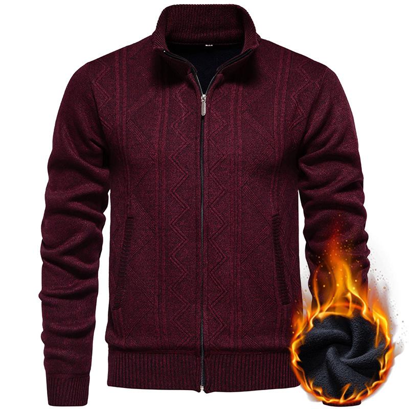 Pánský svetr Podzimní a zimní Stojáček Silný Teplý Plus Sametový Kardigan Svetr Žakárová Ležérní Bunda