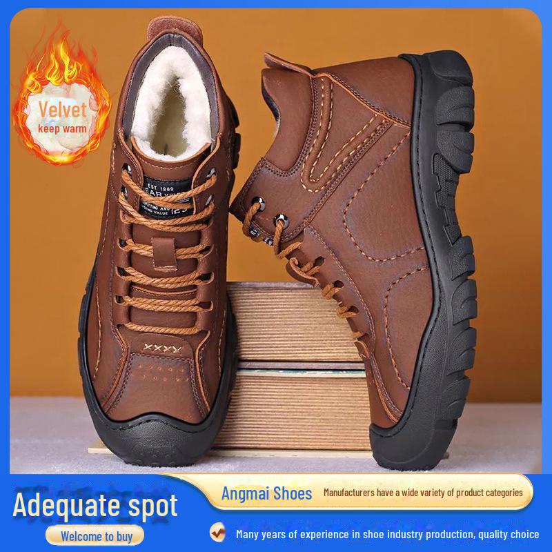 Men's Winter Fleece-lined, Thickened, Waterproof, Casual, High-top Sports Shoes, Outdoor Plus Size, Comfortable Snow Boots