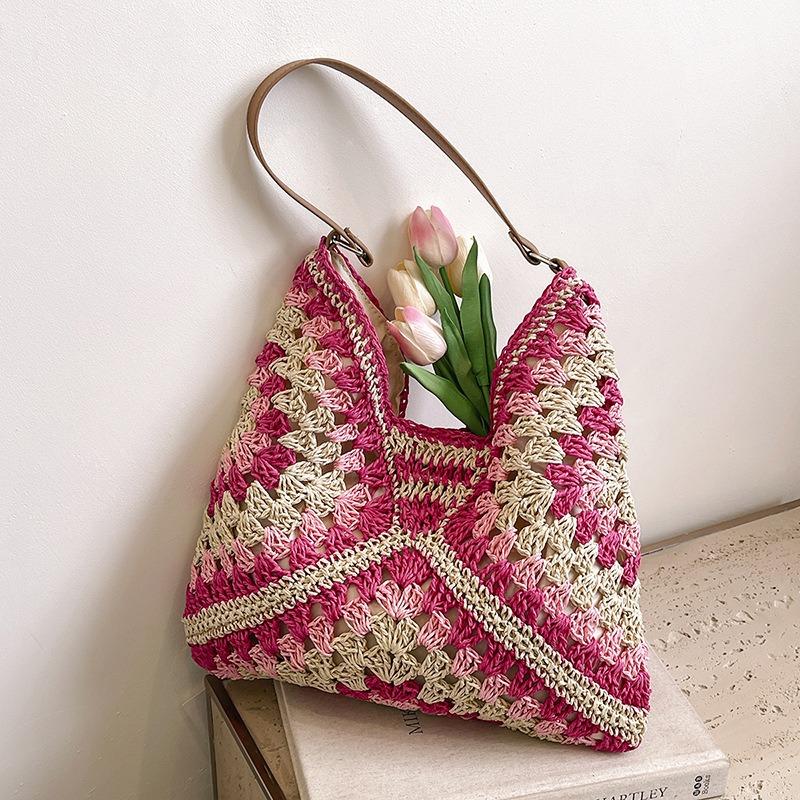 Retro contrasting color bag women's new imitation straw woven bag vacation beach bag casual armpit bag